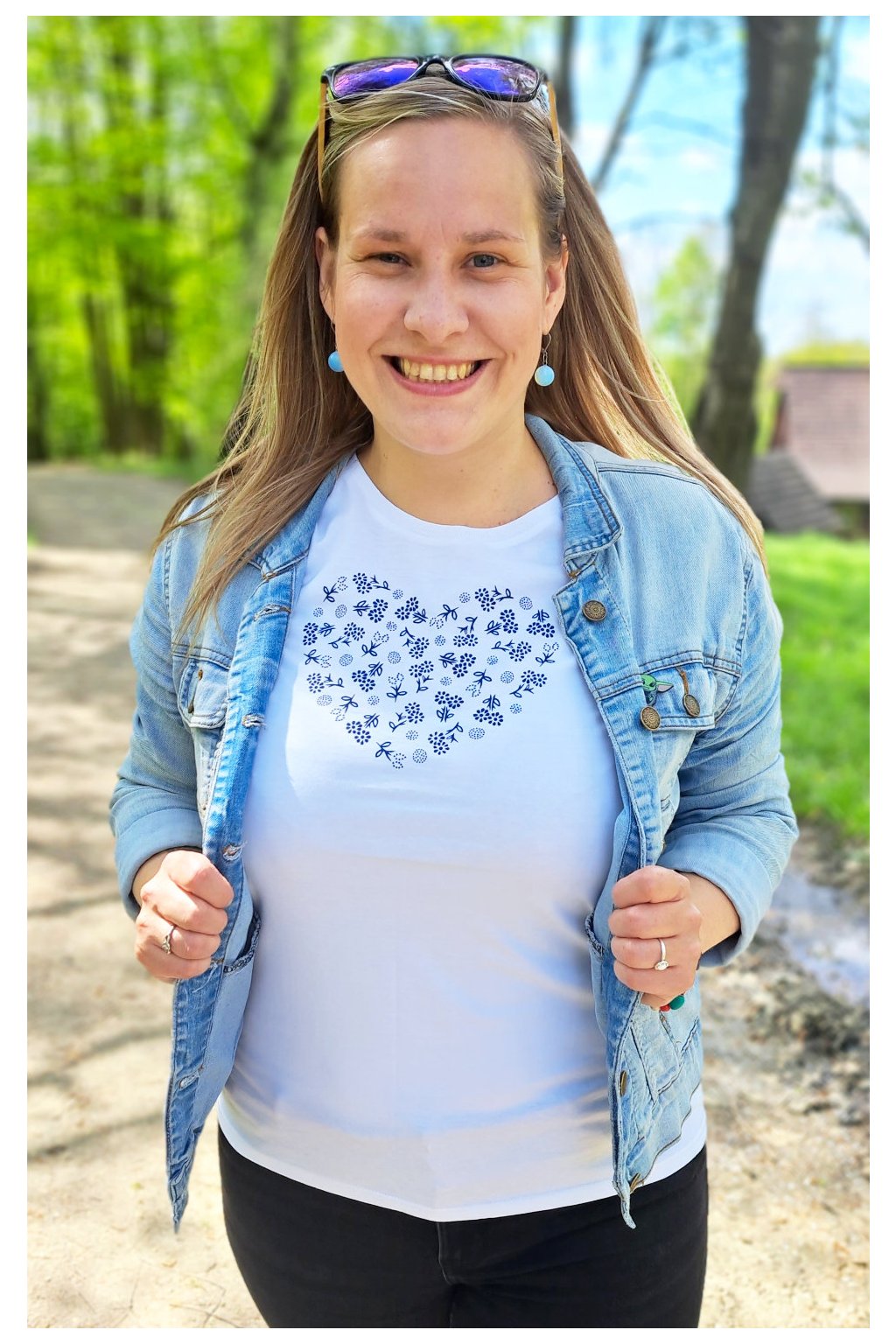 Dámské tričko Srdce s modrotiskem I