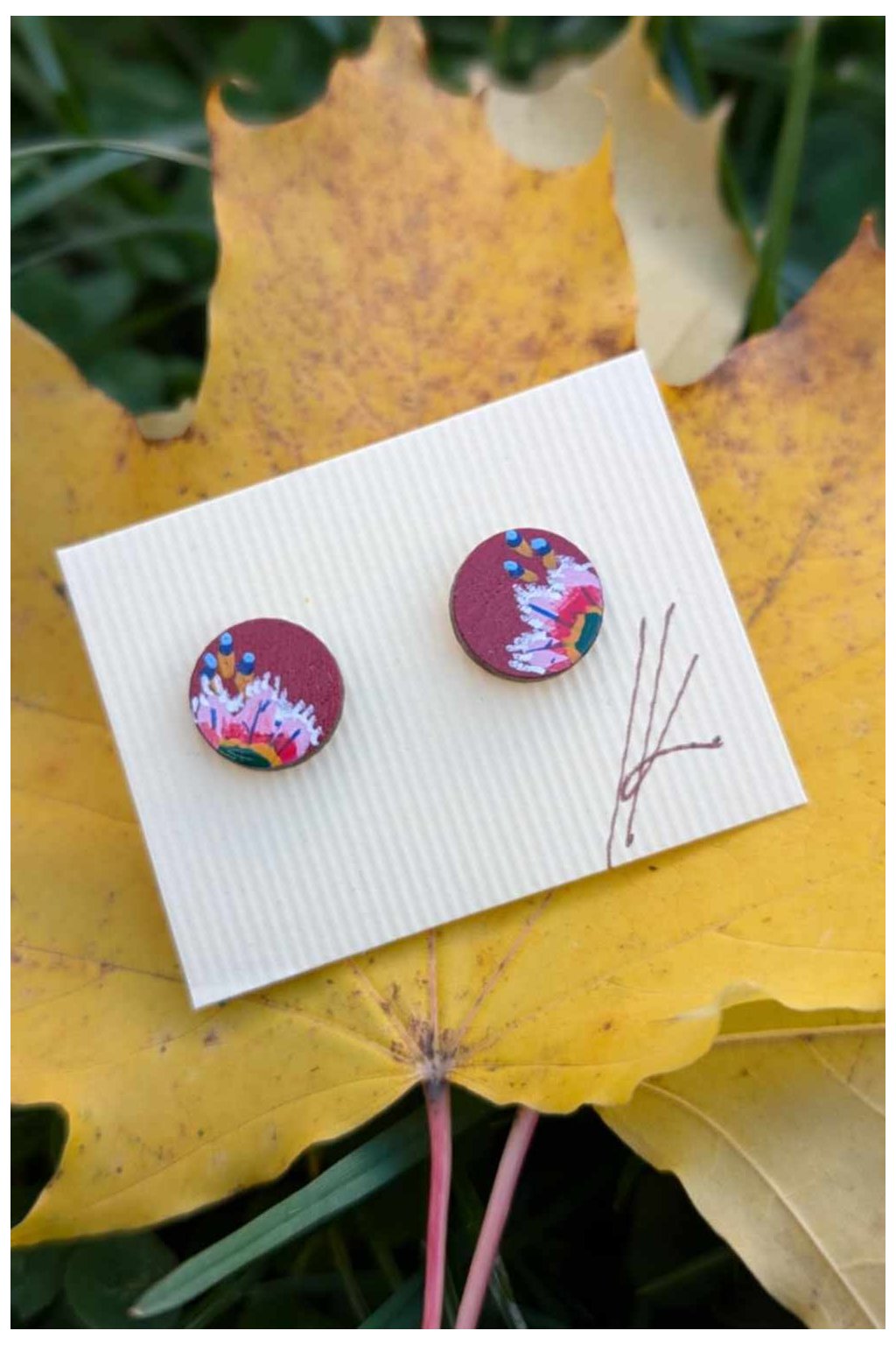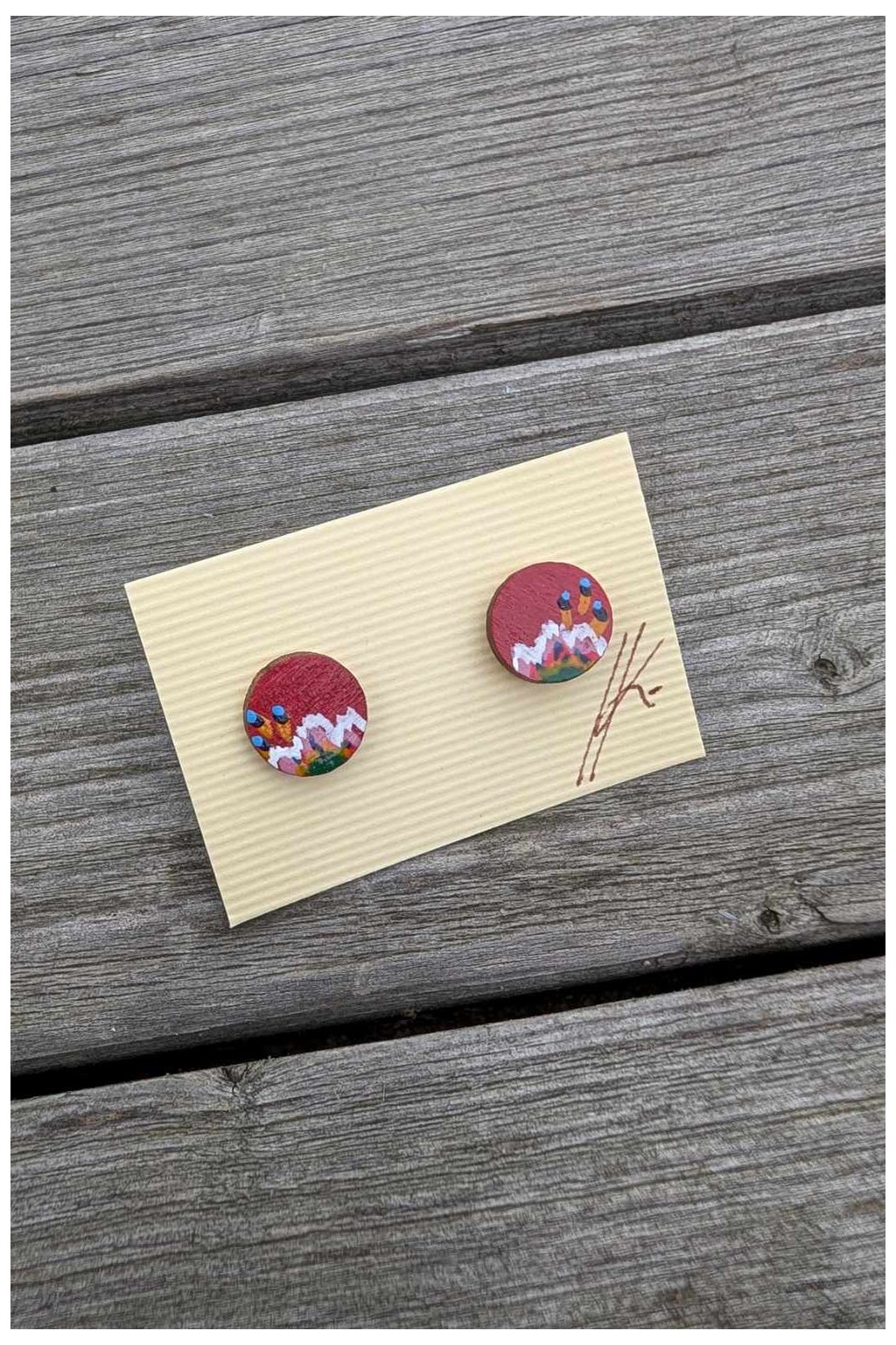 Irča je cérka šikovná. Néenom, že umí kresliť, ale dokáže nakresliť aj detaily, keré společně dajú vzniknúť takýmto krásným dřevěným náušnicám. No a včil možú byť aj tvoje. Náušnice sú vyrobené z tvrdého bukového dřeva, ručně broušené a malované akrylovými barvami. Tečkú na tem všem je kovová součástka, kerá je z chirurgické oceli.