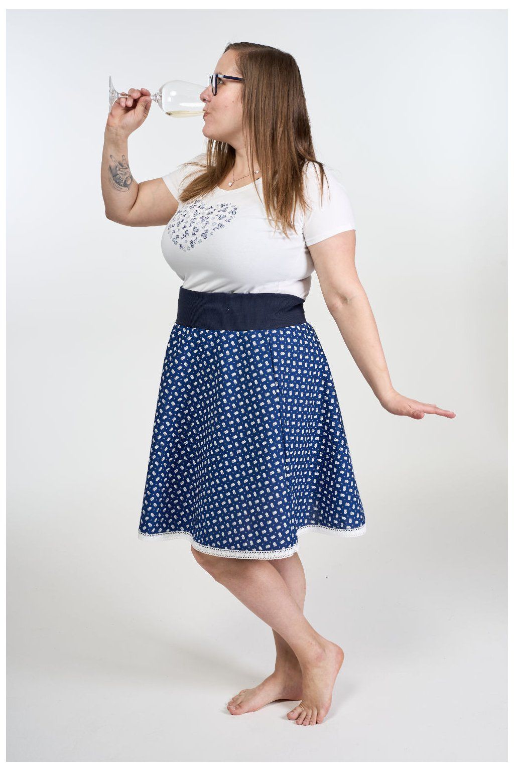Sukénka je pro každú cérku, kerá sa chce zalúbiť. Střihem púlkolová, tož sa aj roztočí a se střihem delší, jak naše sukénky z lykry. Navíc má v pase zabudovanú ďúru pro gumu - to pro případ, že by cérka zchudla. Tož moc neváhaj, dívčí folklorní sukně dú na dračku a většinú za po nich enem zapráší!