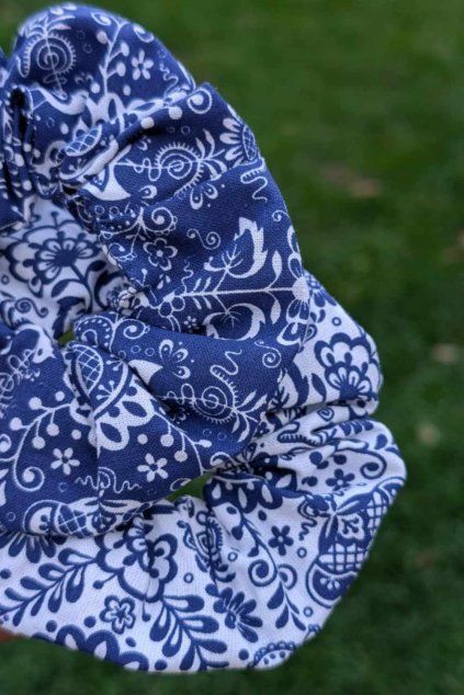 - Přírodní materiál se vzorem modrotisku